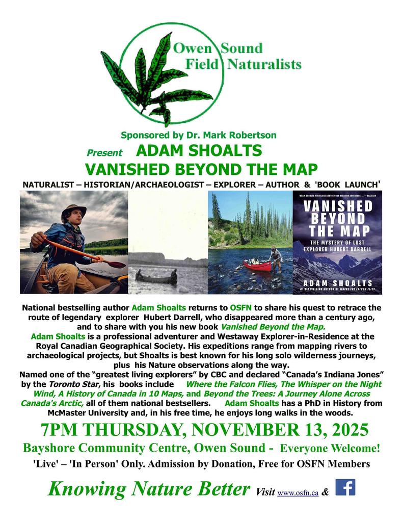 OSFN Indoor Meetings are normally held on the second Thursday of the month at 7:00 p.m. at the Bayshore Community Centre, 1900 3rd Ave E Owen Sound. There are no Indoor Meetings in July and August. Please see the individual event listings below for more details.